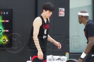 今天练三分球💦小吧现场直击杨瀚森训练 与前青岛外援里斯一组