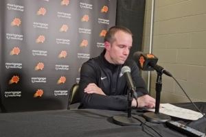体育资讯10月26日讯 NBA常规赛,太阳111-133大比分不敌掘金。赛后,太阳主帅乔丹-奥特接受了采访。