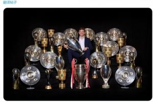 拜仁官方社媒晒出穆勒与奖杯的合照,配文:“第一无二的托马斯-穆勒今天迎来36岁生日,我们衷心祝愿这位传奇生日快乐!”