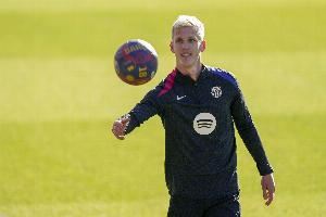 巴萨全队昨日恢复训练后,今天继续为甘伯杯做最后准备。今天球队安排了体能与有球结合的训练,所有可以登场的巴萨球员悉数参加。奥尔莫因身体轻微超负荷,单独进行了训练。